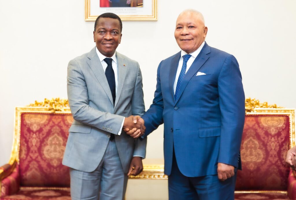 En séjour à Brazzaville dans le cadre de la première conférence internationale sur l’Afforestation et le reboisement, le Président de l’Assemblée nationale, Sévon-Tepé Kodjo Adédzé, a rendu une visite de courtoisie à son homologue congolais, Isidore Mvouba, le samedi 06 juillet 2024, au siège du Parlement congolais.
