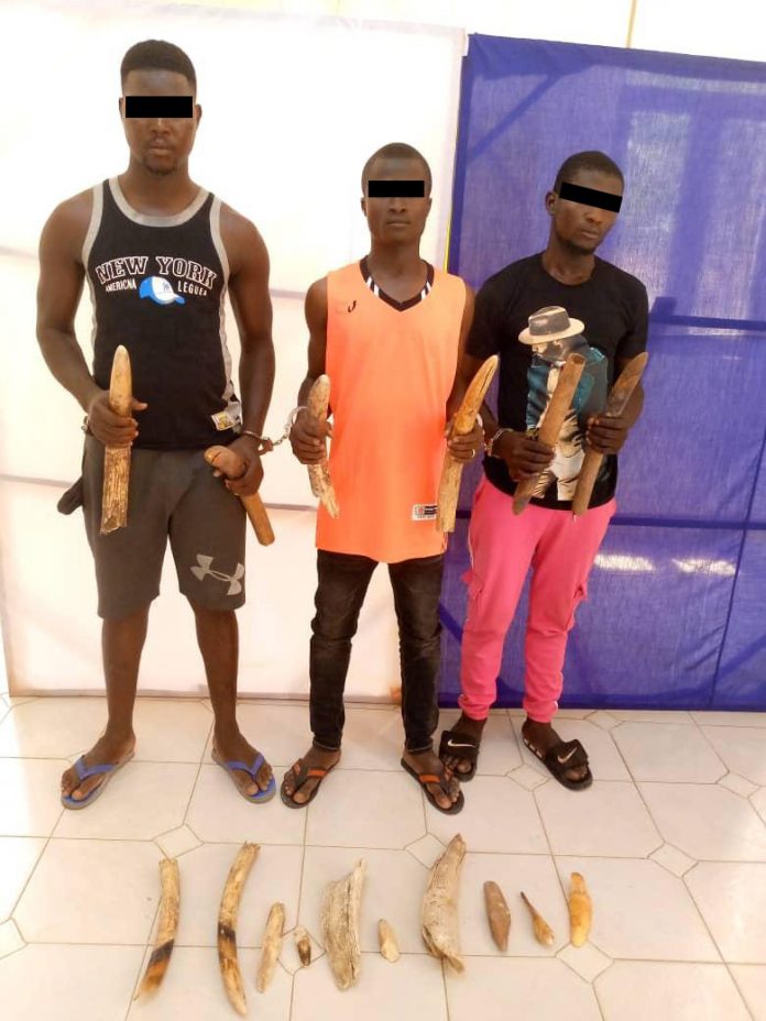 Trois présumés trafiquants d’ivoire arrêtés en flagrant délit de détention, de circulation et de la commercialisation illégale de huit défenses d’éléphants, le 28 mai 2021 à Kara, ont été déférés à la prison civile de la même ville, le 31 mai 2021. L’arrestation a été possible grâce aux agents de la Brigade de Recherche et d’Investigation (BRI) et du Ministère de l’Environnement et des Ressources Forestières (MERF) en collaboration avec EAGLE-Togo.
