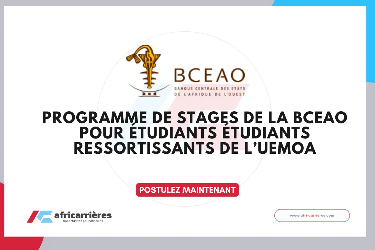BCEAO : Ouverture des candidatures pour le programme de stages 2026