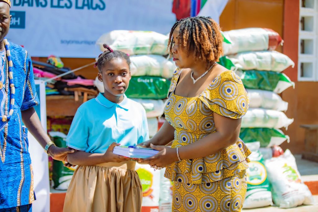 Dr, Sandra Ablamba Johnson, concrétise l’engagement du Chef de l’Etat pour une éducation équitable par un important don d’articles scolaires et de vivres dans les Lacs