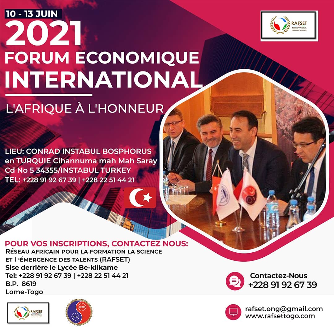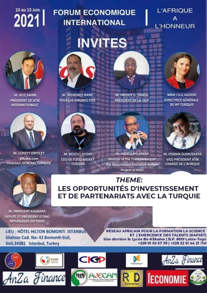 Le groupe ATIK en partenariat avec le CICP et Perfom Group Turkey, organisent du jeudi 10 au samedi 13 juin 2021 le Forum Africain sur l’investissement ( Invest Africa Forum Turkey IAFT) à Istanbul en Turquie.