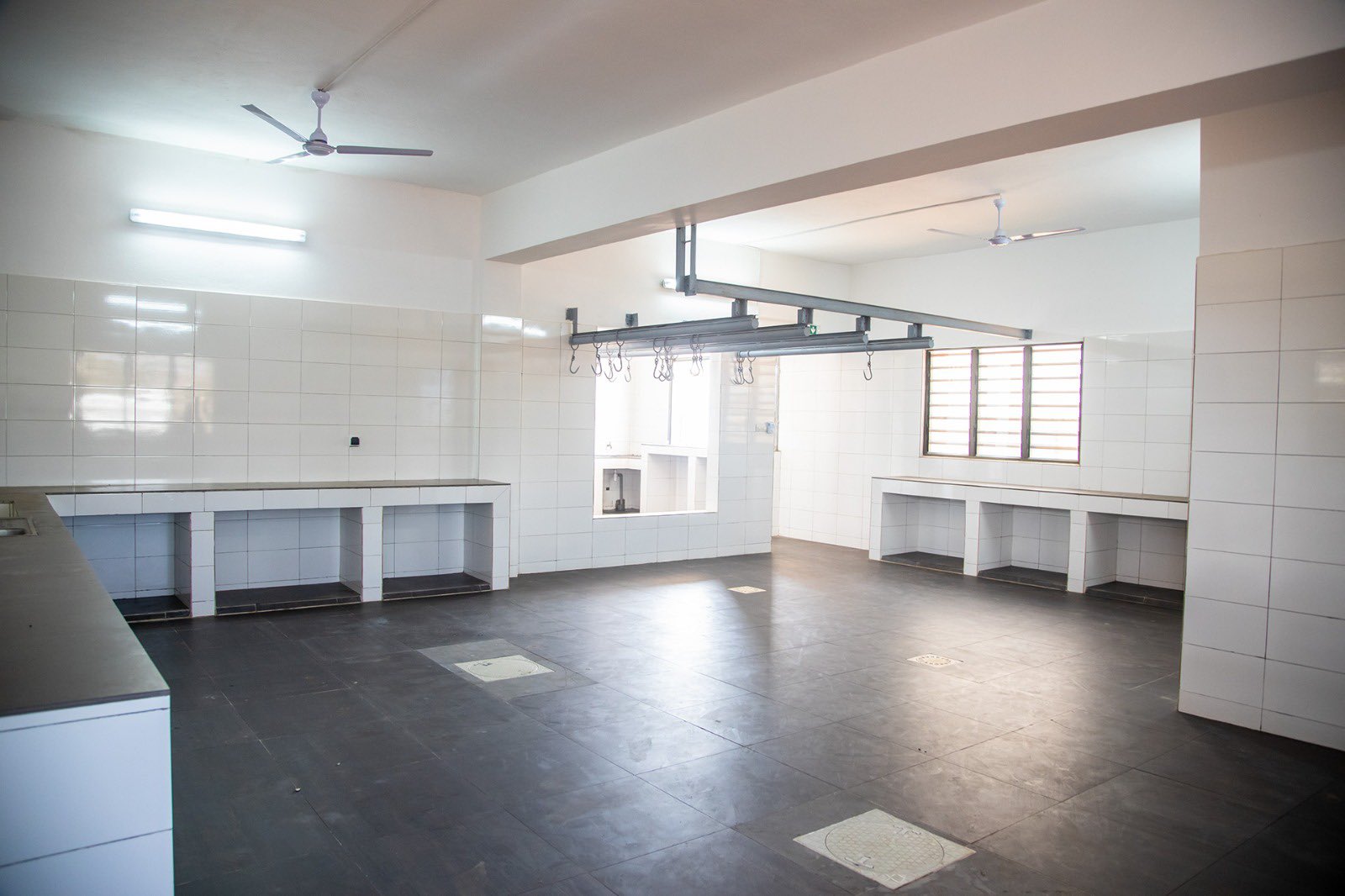 Construit sur un domaine de 2073m2, le complexe dispose d’un abattoir principal pour bœufs comprenant un espace d’accueil, un couloir d’amenée des bœufs, une grande salle d’abattage, un espace de découpage, une salle de feu pour le traitement, une chambre froide, des bureaux pour l’administration.