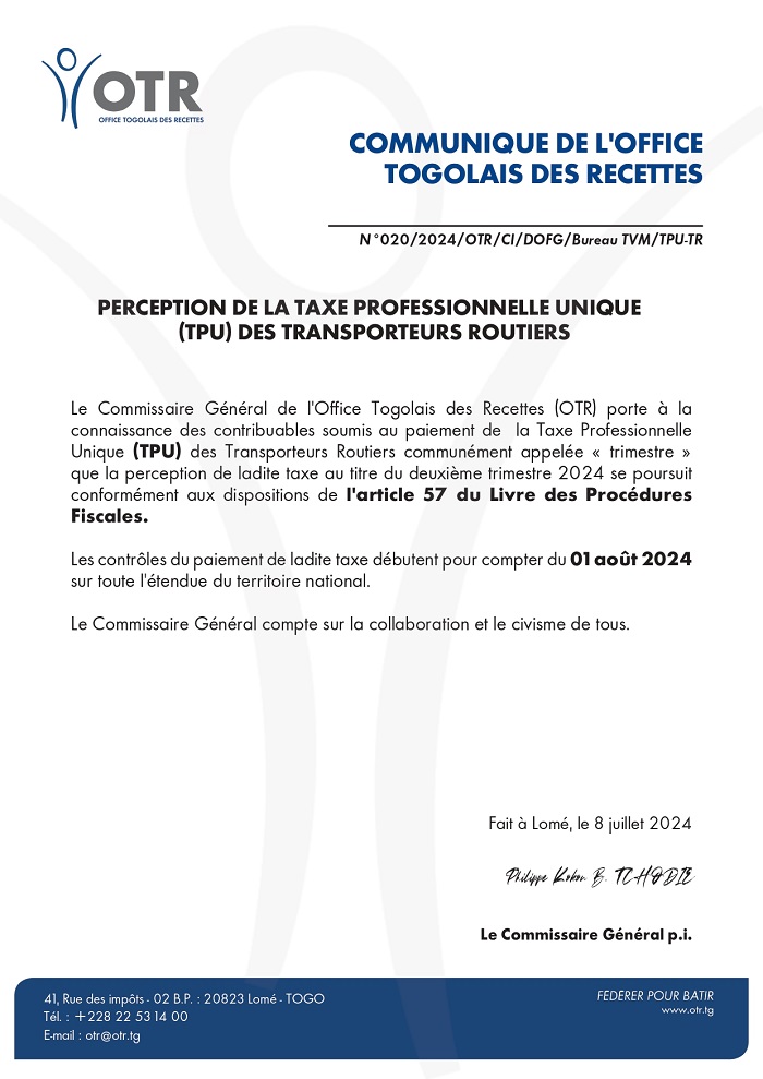 Pour vos reportages, annonces et publicités, contacter le service commercial de votre site TOGODAILYNEWS
