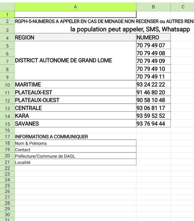 Le gouvernement toujours à l’écoute des togolais a jugé nécessaire de mettre à la disposition des populations, des numéros qui leur permettront de se faire recenser dans les meilleurs délais.