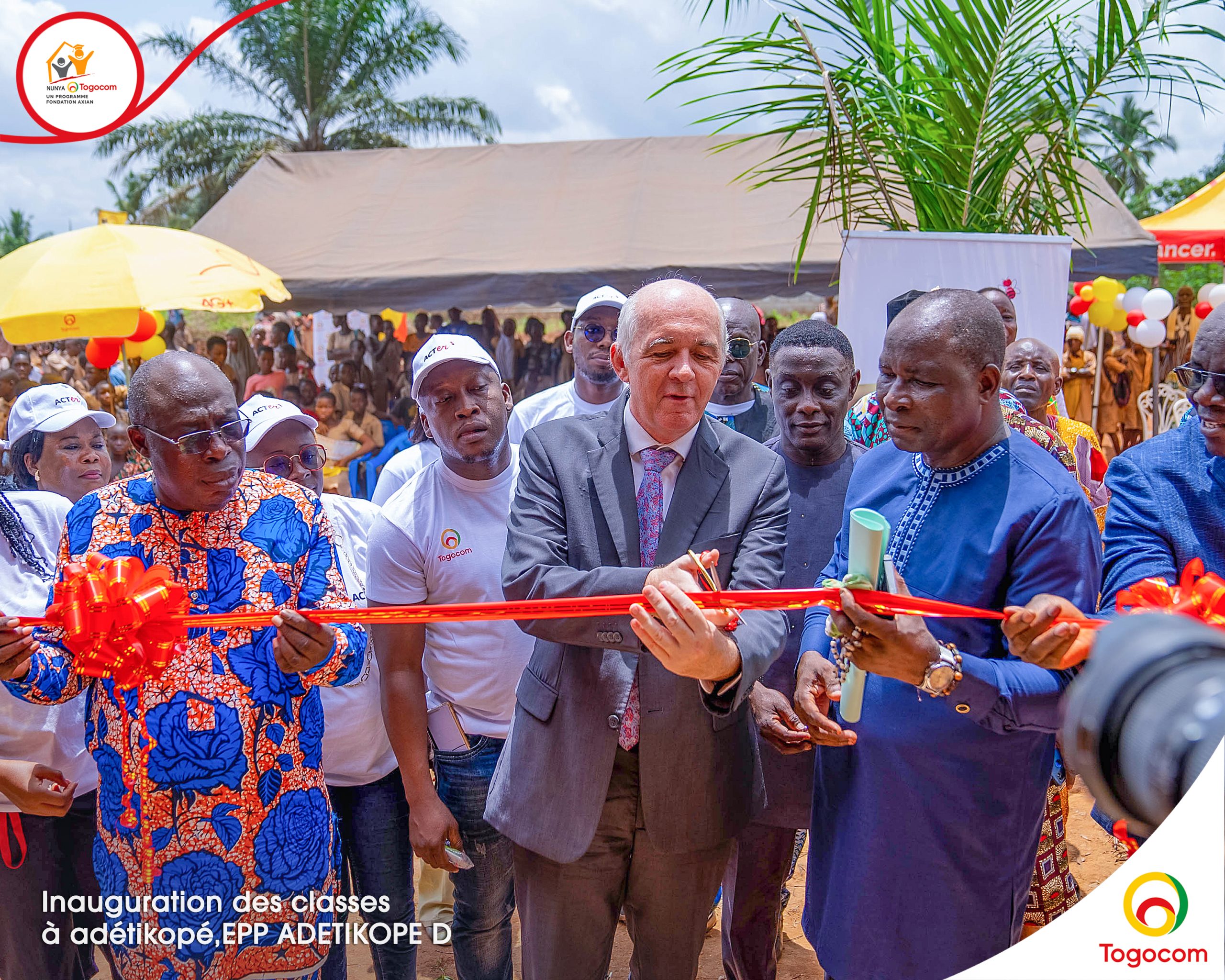 Le Directeur général de Togocom, Pierre-Antoine Legagneur, a officiellement remis au Ministère des Enseignements Primaire, Secondaire, Technique et de l’Artisanat (MEPSTA), deux nouveaux bâtiments scolaires construits par Togocom et la Fondation Axian dans les localités d’Adetikope (Agoè Nyivé 6) et de Kadjale (Tchamba), grâce au programme Nunya Togocom.