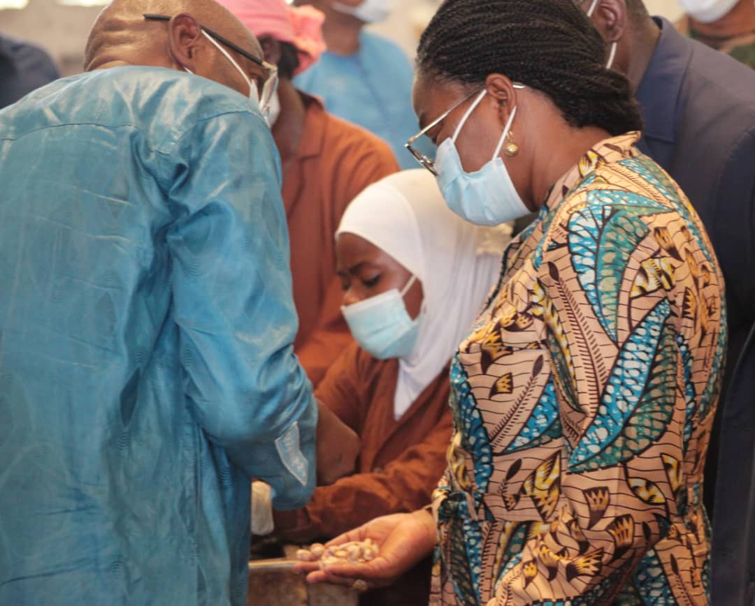 Cette visite a permis à Madame le Premier Ministre de suivre les activités de cette unité de transformation des noix de cajou dans la préfecture de Tchaoudjo. La ferme Cajou du centre, d’une superficie totale de deux mille hectares met en valeur 553 ha à travers une chaîne complète de transformation de bout en bout avec des machines automatiques. La chaîne de transformation agricole installée, a une capacité de production de 8 mille tonnes de noix de cajou par an et deux mille tonnes d’amende par an. L’essentiel de la production est exporté dans les pays d’Europe et aux États-Unis d’Amérique.